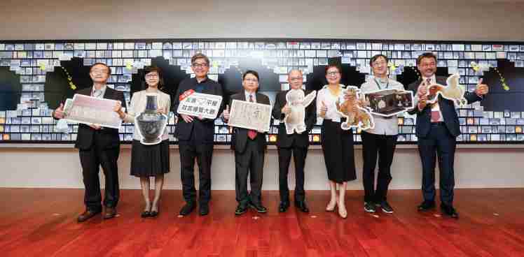 传奇国际携手创利空间为故宫建置的智慧文物互动导览墙及轮播墙,,今日正式启用。。。(左四:传奇国际新事业暨投资管理总部副总经理杨本豫、、、、右四:故宫博物院院长吴密察、、、右三:太极影音董事长黄宝云)